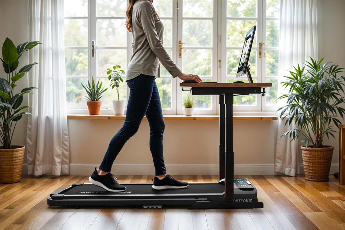 Bez piepūles pārslēdzieties starp mazkustīgu darbu un aktīvām kustībām, nepārtraucot savu rutīnu. Skrejceliņš lieliski iederas zem regulējama galda un ļauj staigāt, strādājot, tiekoties vai veicot zvanus.