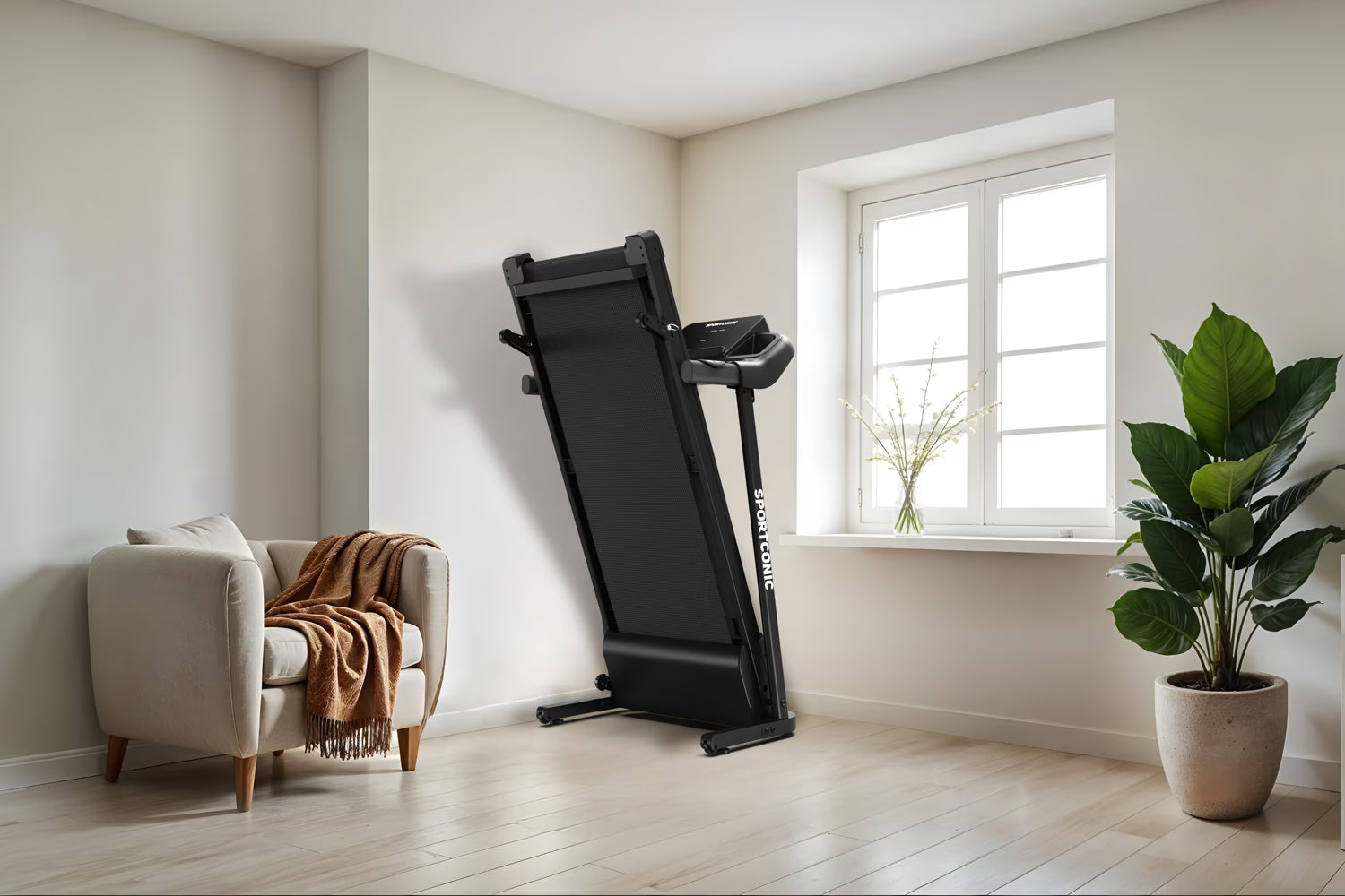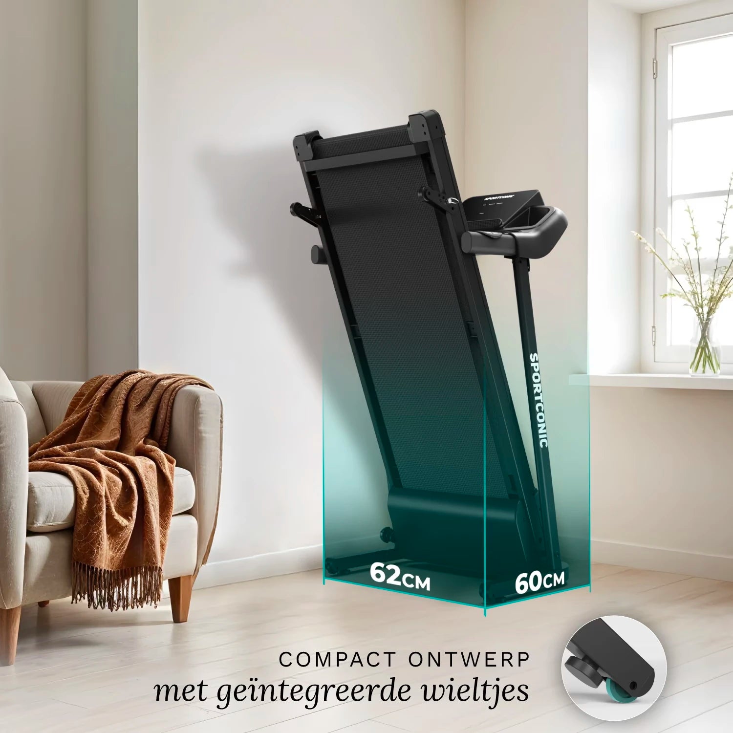 Pēc lietošanas skrejceliņu var bez piepūles uzglabāt dažu sekunžu laikā. Tas viegli salokās, un integrētie transportēšanas riteņi padara tā pārvietošanu vienkāršu un bez piepūles.
